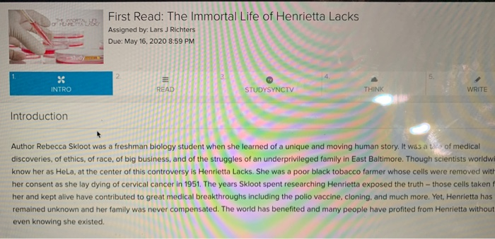 Solved Offlitan First Read The Immortal Life Of Henrietta Chegg Com